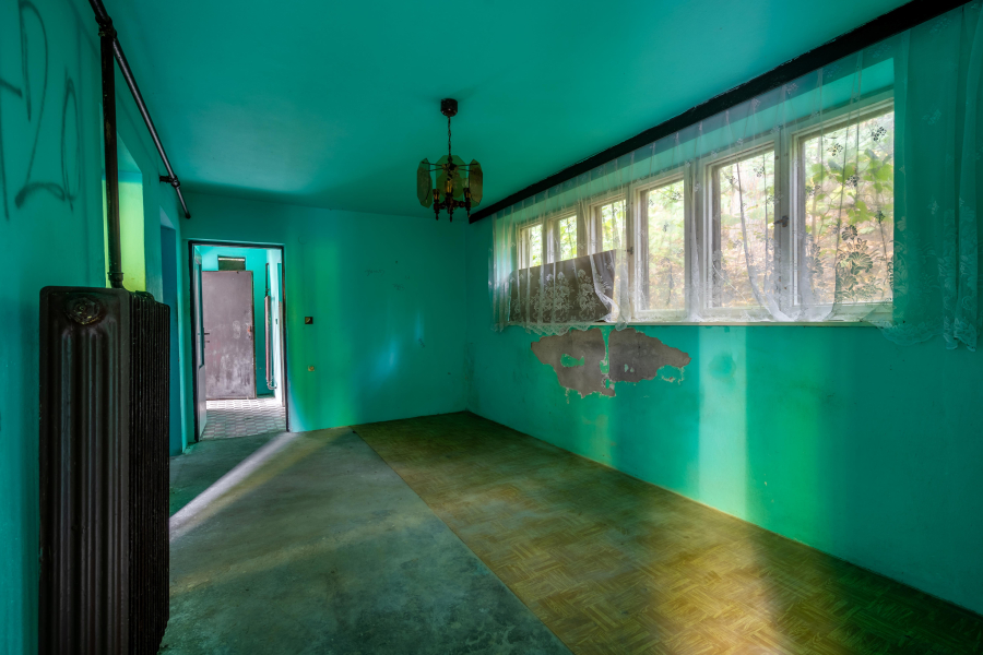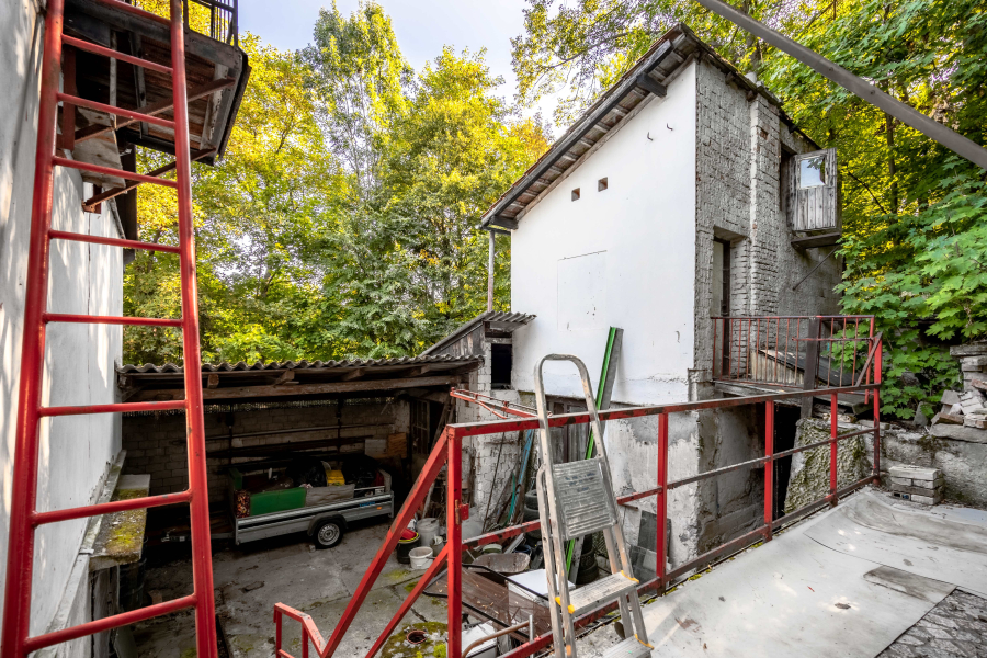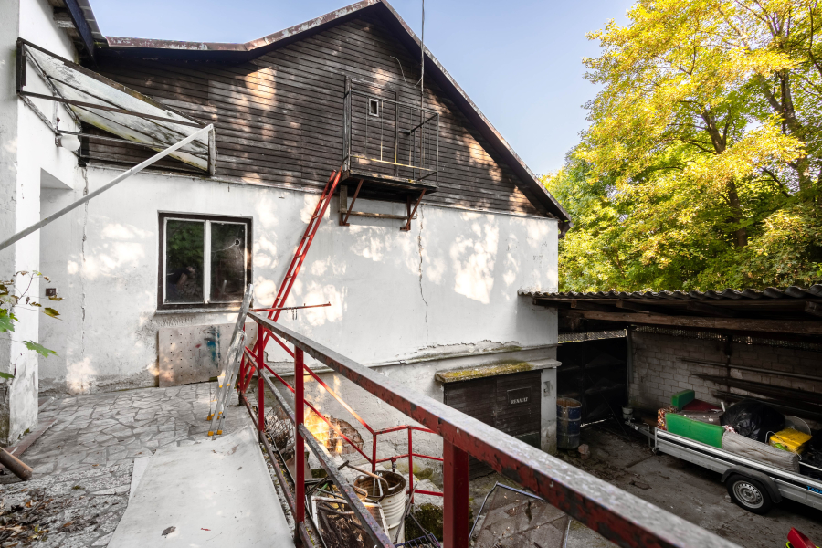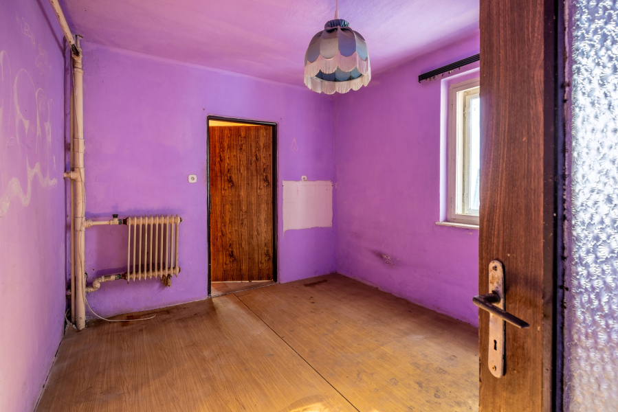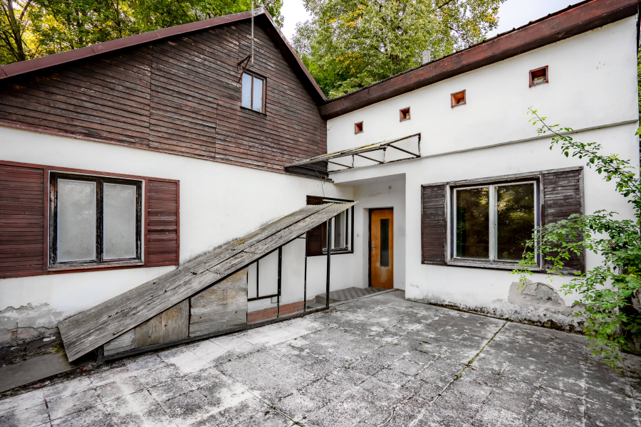 V patře je 5 obytných místností, kuchyně a koupelna s vanou a WC. Nemovitost je napojena na septik, voda obecní, elektřina je v současné chvíli odpojena. K domu je připojena ještě jedna menší stavba, kde v přízemí je místnost s jámou, určena pro opravu aut. V patře je sklad.